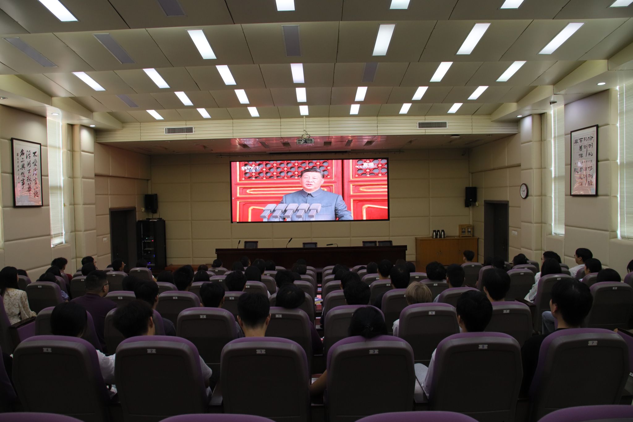 9月3日上午,纪念中国人民抗日战争暨世界反法西斯战争胜利80周年大会在北京天安门广场隆重举行。中共中央总书记、国家主席、中央军委主席习近平发表重要讲话。全体校领导,机关工作人员代表在综合楼四楼会议室集中收看,学生代表在一教学术报告厅收看,各二级学院、各部门师生通过各种形式观看了大会盛况。