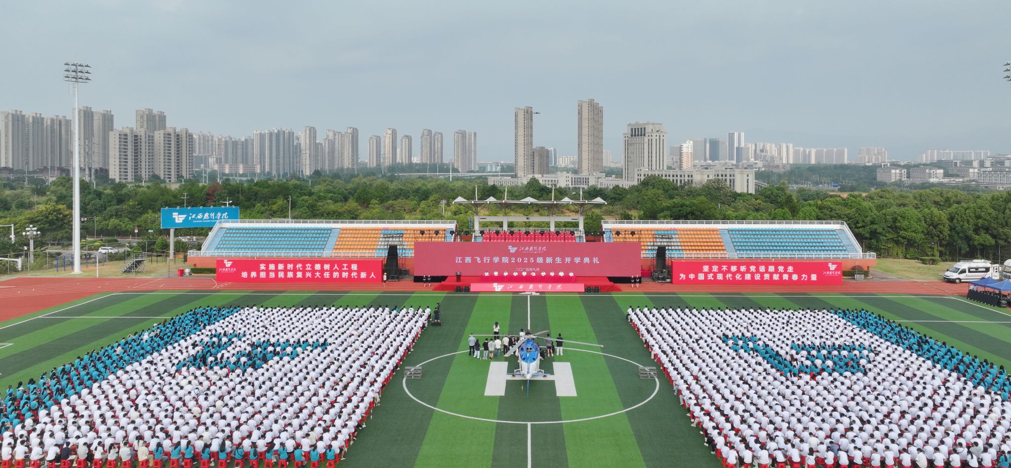 9月7日,beat365英国官网网站2025级新生开学典礼暨“开学第一课”在南昌校区田径场举行。来自全国16个省、自治区、直辖市的近2200名新生齐聚江飞,启航新篇。
