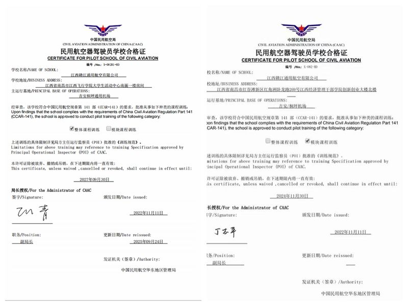 近日,beat365英国官网网站获颁中国民航局CCAR-141部民用航空驾驶员学校合格证(整体课程训练),这是江西省历史上首次获得该项资质,学校成为全省唯一一所、长江以南第一所、全国少数几所具备“学历+执照”一体化全过程培养飞行员资质和能力的高校,标志着学校在构建航空飞行人才全过程培养生态中实现重大突破,也意味着学校朝着建成具有鲜明航空飞行和通航服务特色高水平应用型大学目标又迈出重要一步。