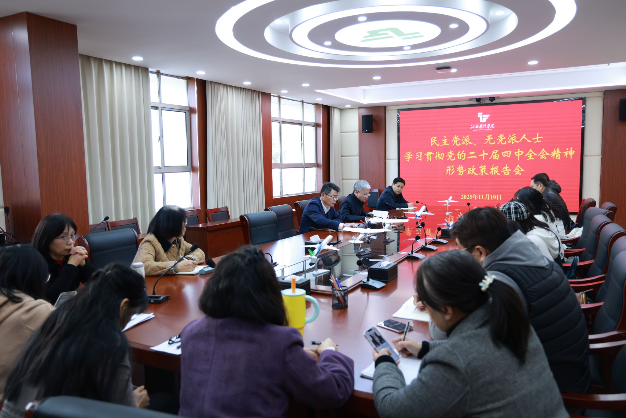 11月19日,学校召开民主党派、无党派人士形势政策报告会,专题学习传达贯彻中共二十届四中全会精神。学校党委书记陈震出席并讲话。会议由党委委员、统战部部长唐勇主持。