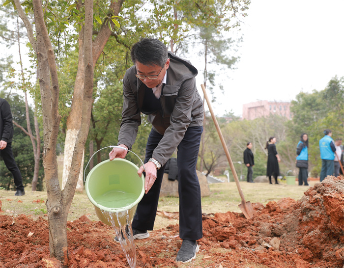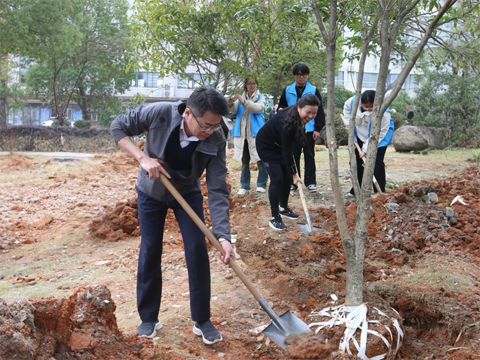 微风拂面,大地回春。在第47个植树节来临之际,为贯彻落实习近平生态文明思想,增强师生环保意识,共建幸福美丽的江飞校园,3月11日,学校组织师生开展义务植树活动。校党委书记陈震,校长龙国英,校领导肖鸿晶、欧阳剑雄、周志彬、郭军华及部分机关工作人员、学生代表参加植树活动。