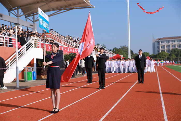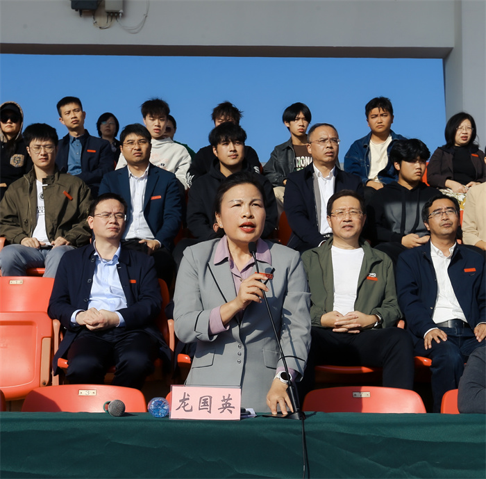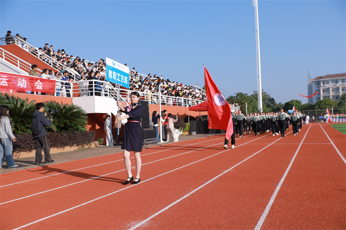 熊运儿代表学校党委和行政,对精心筹备本次运动会的工作人员表示诚挚的谢意,向参加比赛竞技的全体运动员、裁判员致以亲切的问候和良好的祝愿。他指出,学校认真贯彻党的教育方针,落实立德树人根本任务,把体育教育工作作为立德树人根本任务的重要环节,对培养适应国家高质量发展的高素质技能人才具有积极的作用。他希望,全体运动员赛出水平、赛出风格,全体裁判员忠于职守、公正裁决,全体同学发扬奉献精神和团队合作精神确立服务意识,全体师生通过本次运动会自觉加入到运动中来加强锻炼增强体质,共同推动全民健身和全民健康深度融合。