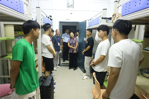在新生宿舍,校长龙国英与同学们亲切交流,希望同学们能尽快从学习上生活上心理上适应新的大学生活,勉励他们早立报国大志、科学规划未来,勤于学习实践、加强体育锻炼,争做振奋精神、昂扬向上的新时代好青年。在老生宿舍,龙国英认真察看宿舍生活设施,仔细询问学习生活状况,用自身大学学习成长经历,鼓励同学们树立远大理想信念,珍惜美好大学时光,加强专业学习、淬炼专业技能,文明精神境界、强壮身心体魄,为将来自身职业发展、投身建设祖国提升能力素质、奠定良好基础。
