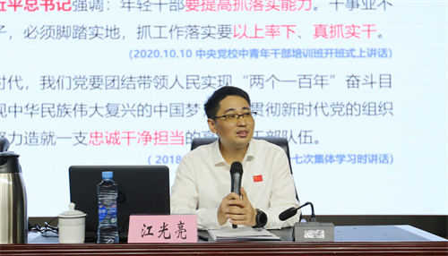 南昌航空大学党委常委、副校长江光亮应邀作专题辅导报告。他以“念好“六字诀”,提高抓落实能力”为题,从“怎么看”“怎么干”“怎么样”“怎么想”四个方面,分析了党员干部抓落实存在的主要问题,提出了抓好落实的“导、批、考、奖、惩、保”六字诀。