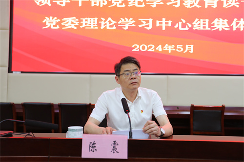 5月10日,学校领导干部党纪学习教育读书班开班,党委书记陈震作开班讲话。校领导及学校中层干部参加开班式。