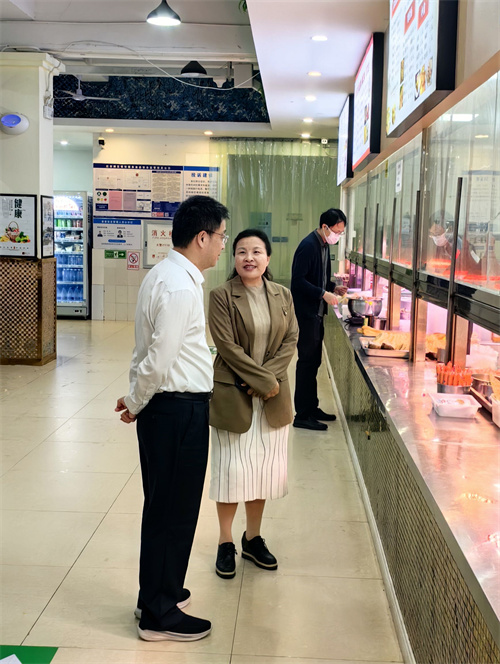 熊志刚一行实地检查了学校食堂的环境卫生、食品加工制作、餐饮具消毒、菜品菜价等方面工作,并对学校食堂的食品安全工作给予了肯定。他强调学校要一如既往地严格按照上级有关规定的要求,抓好各项食品安全工作的落实。