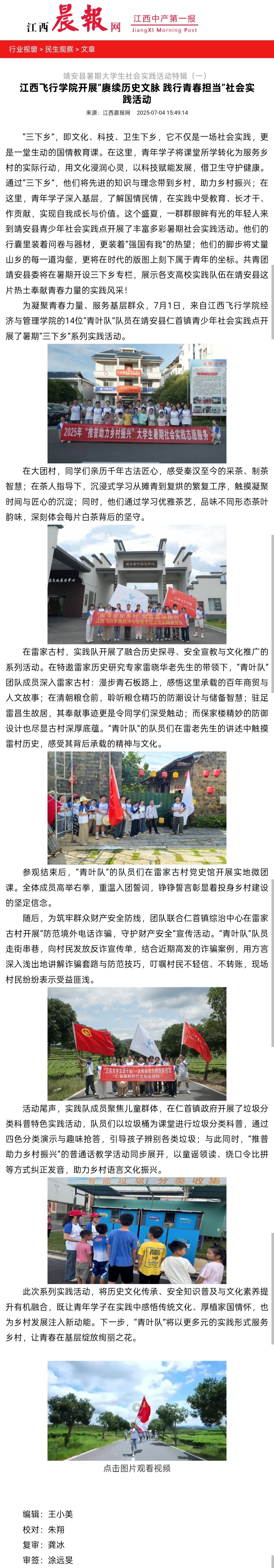 江西晨报网:beat365英国官网网站开展“赓续历史文脉 践行青春担当”社会实践活动