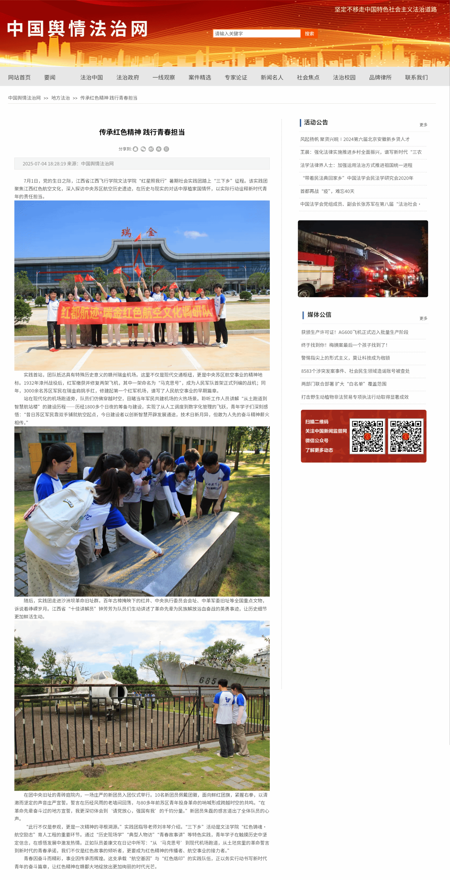 中国舆情法治网:传承红色精神 践行青春担当