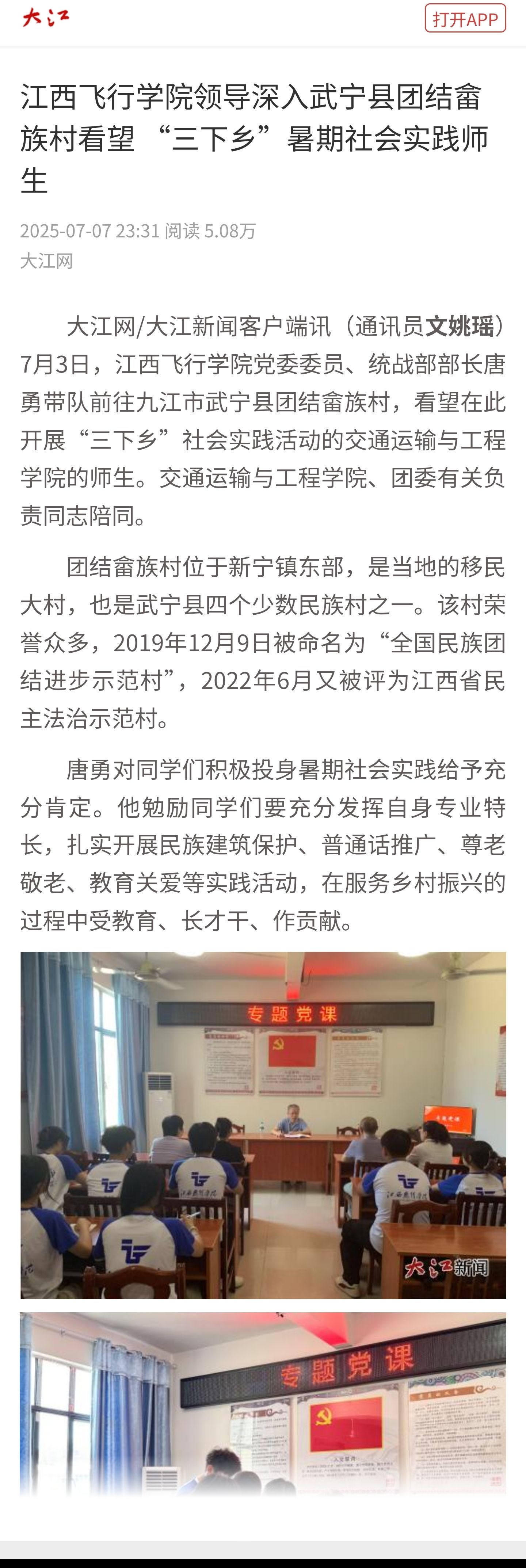 近日,大江网报道,beat365英国官网网站领导深入武宁县团结畲族村看望 “三下乡”暑期社会实践师生详情如下: