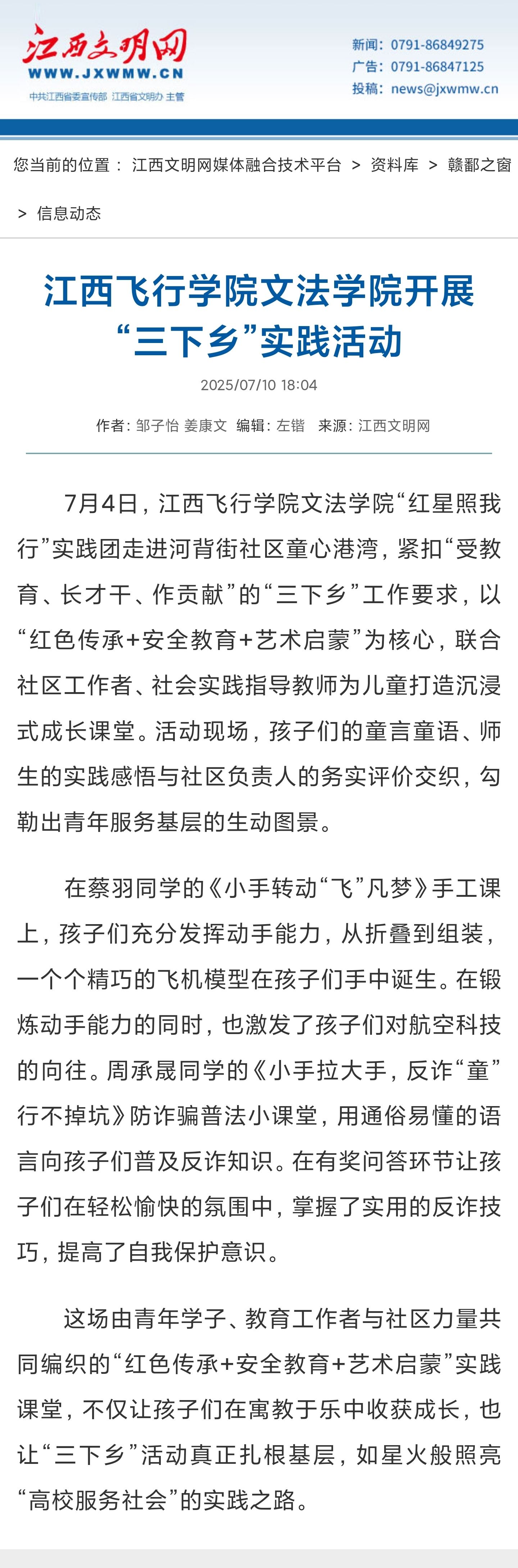 江西文明网:beat365英国官网网站文法学院开展“三下乡”实践活动