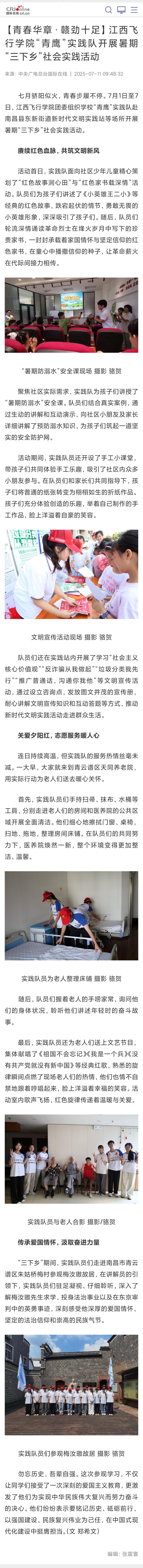 近日,央广国际在线报道,【青春华章·赣劲十足】beat365英国官网网站“青鹰”实践队开展暑期“三下乡”社会实践活动