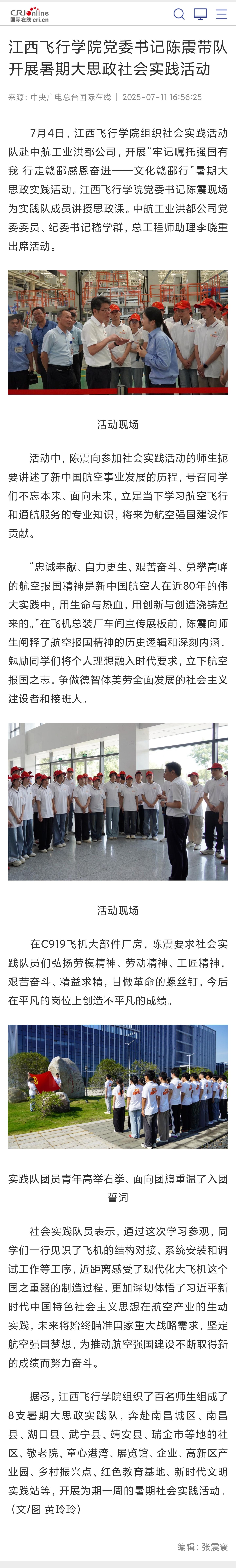 近日,央广国际在线报道,beat365英国官网网站党委书记陈震带队开展暑期大思政社会实践活动详情如下: