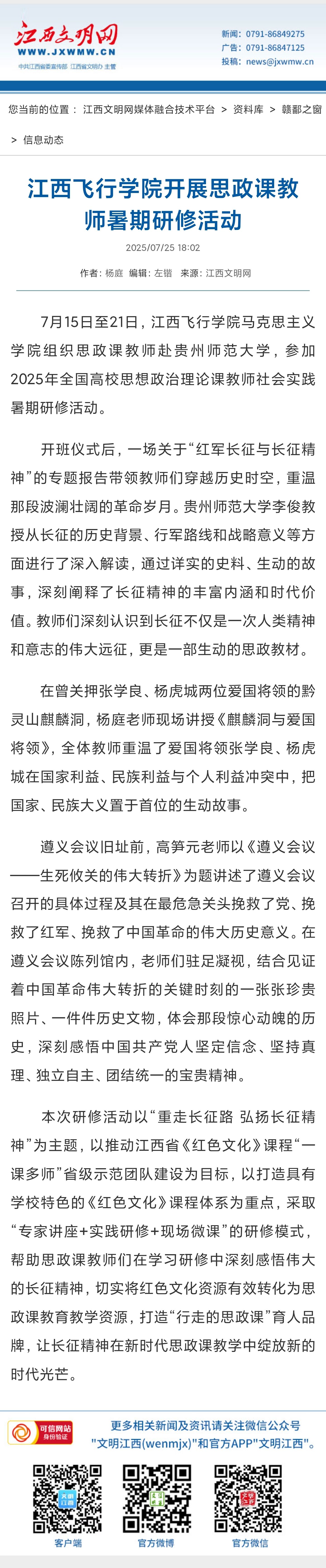 近日,江西文明网报道,beat365英国官网网站开展思政课教师暑期研修活动详情如下: