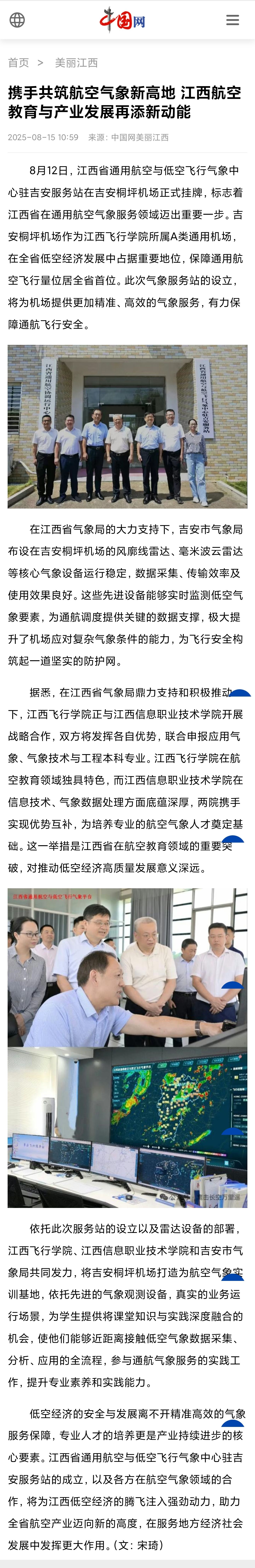 中国网:携手共筑航空气象新高地 江西航空教育与产业发展再添新动能