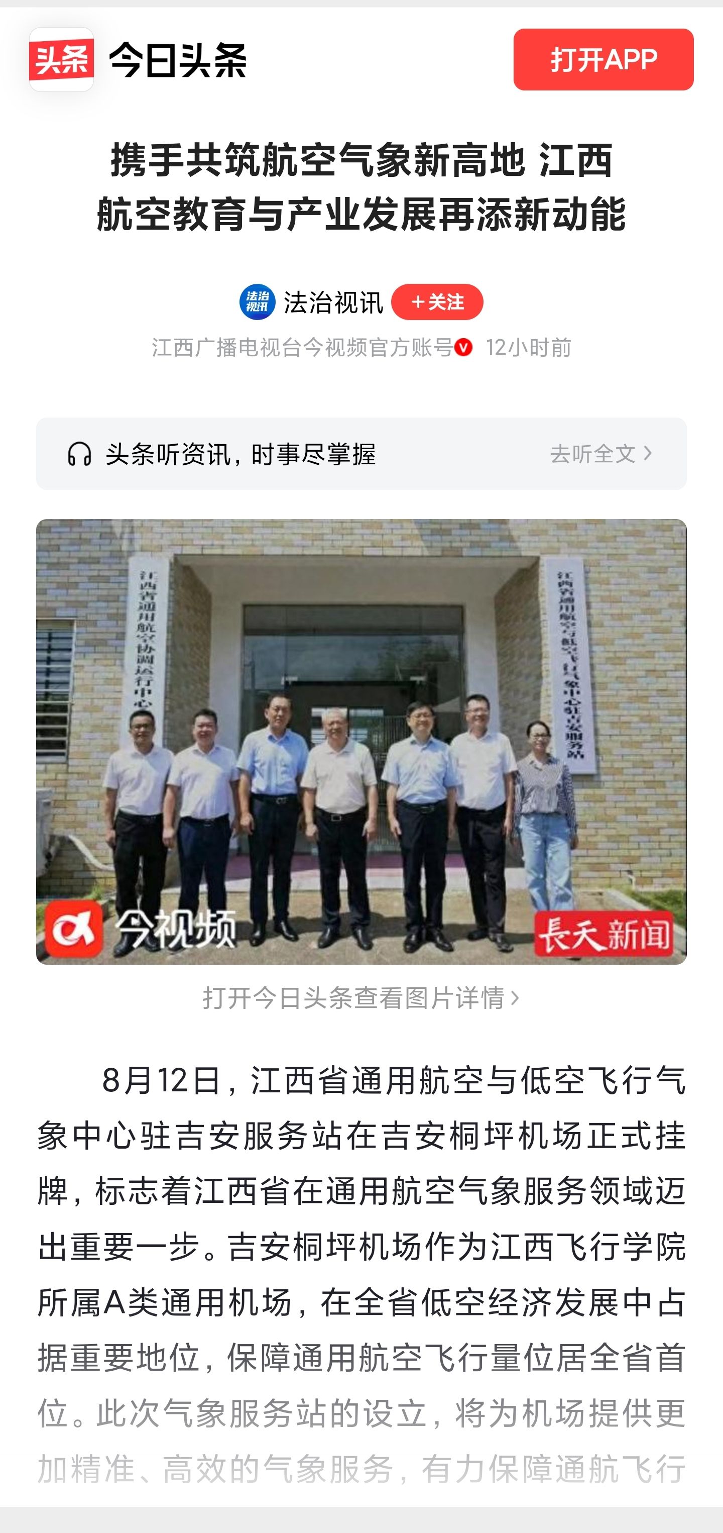 近日,今日头条报道,携手共筑航空气象新高地 江西航空教育与产业发展再添新动能详情如下: