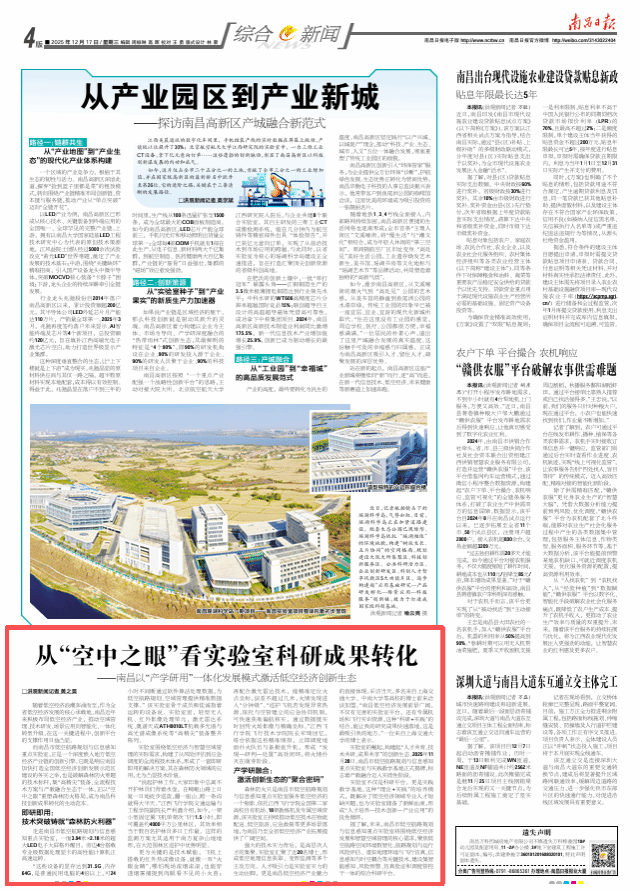 南昌日报:从“空中之眼”看实验室科研成果转化