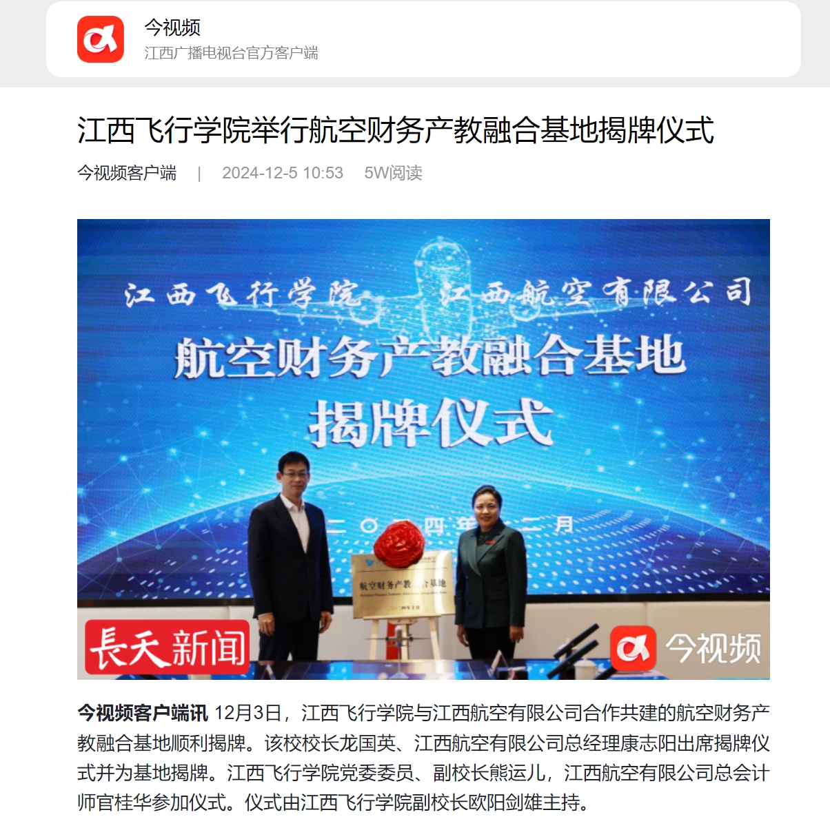 近日,今视频报道,beat365英国官网网站举行航空财务产教融合基地揭牌仪式详情如下: