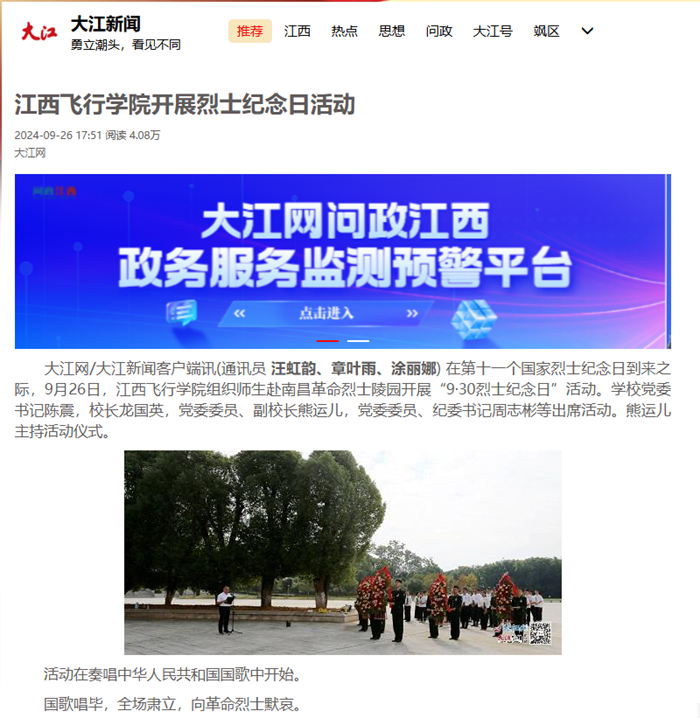 大江网报道,beat365英国官网网站开展烈士纪念日活动。详情如下: