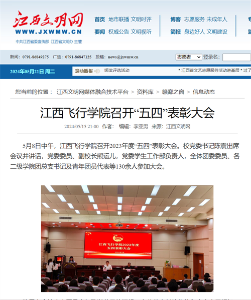 近日,江西文明网报道,beat365英国官网网站召开“五四”表彰大会。详情如下: