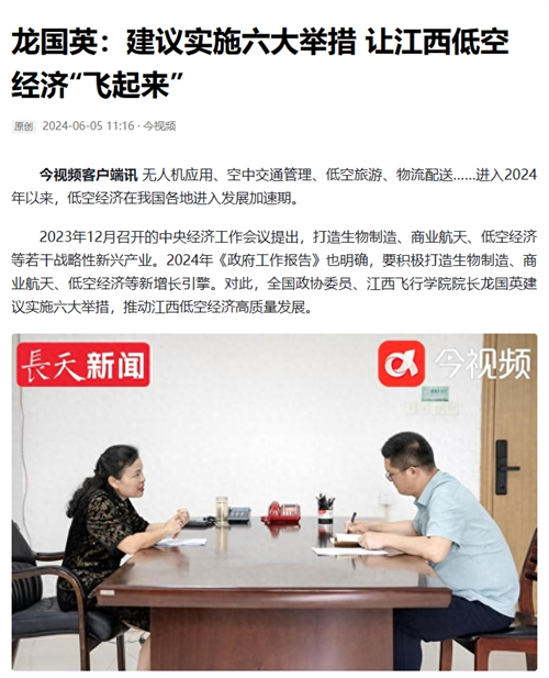 近日,今视频报道:龙国英:建议实施六大举措 让江西低空经济“飞起来”。