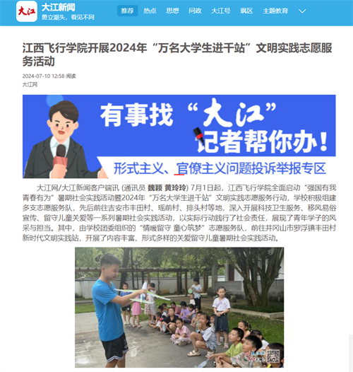 近日,大江网报道,beat365英国官网网站开展“强国有我 青春有为”2024年“万名大学生进千站”文明实践志愿服务活动。详情如下: