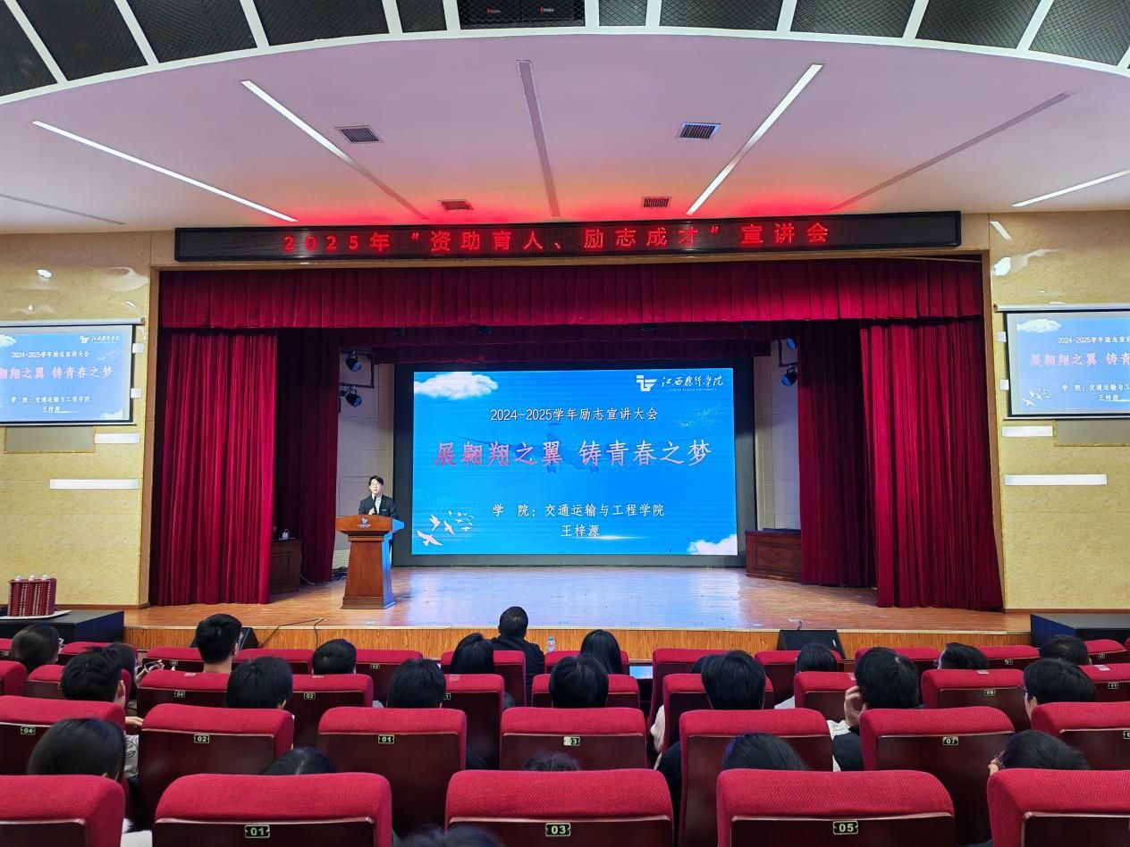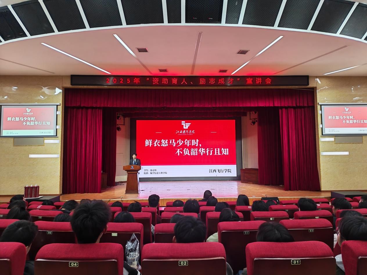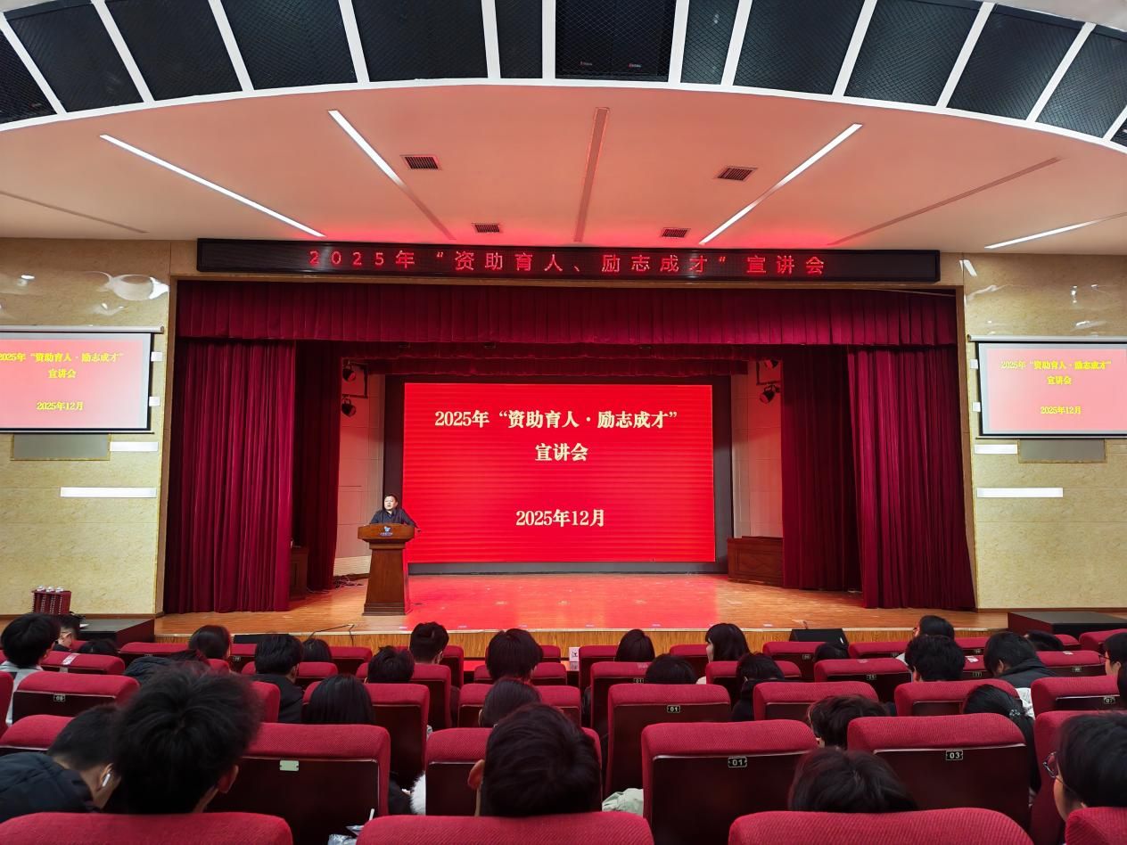 为深入学习贯彻落实党的二十届四中全会精神和习近平总书记关于教育的重要论述,落实立德树人根本任务,充分发挥先进典型的示范引领作用,进一步推动优良学风建设,提升资助育人成效,12月10日下午,学工处在航空大楼多功能报告厅举办2025年“资助育人·励志成才”宣讲会。各二级学院学工办副主任(负责人)、负责资助工作的辅导员和400名学生代表参加了此次宣讲会。