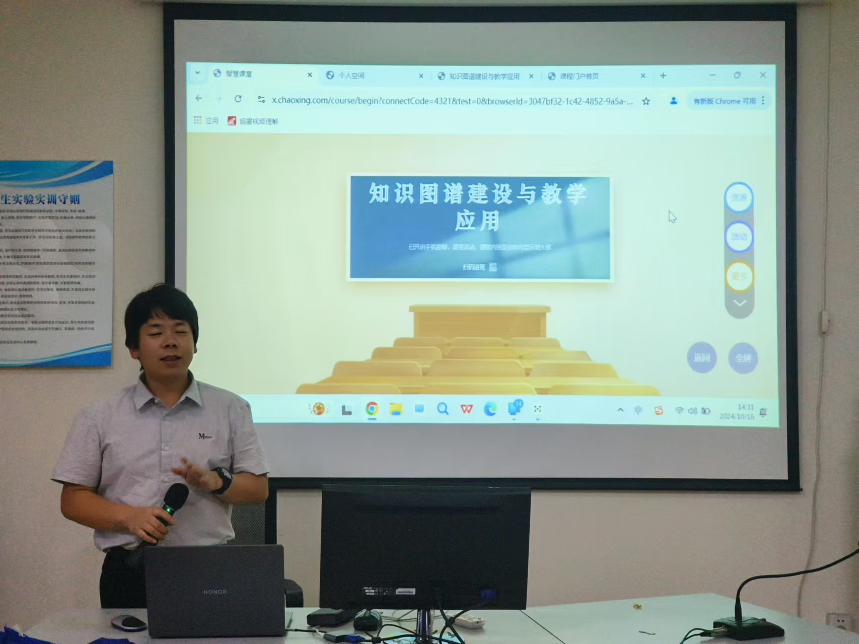 10月16日下午,教务处在航空大楼4312教室举办以“AI赋能智慧教学应用--知识图谱建设与教学应用”为主题的教学沙龙,特邀超星曹冬铭老师授课。各二级学院共40余名教师参加本次沙龙。