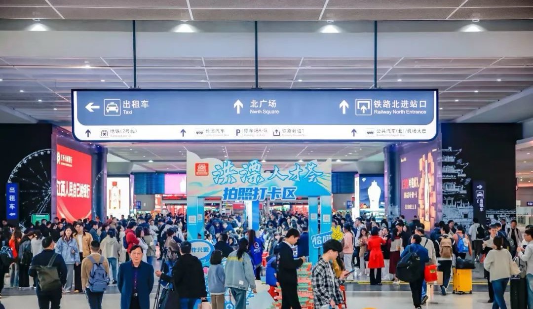 4月3日,2025年南昌市“洪漂人才荟”西站专场招聘会在南昌西站出站口举办,学校组织了近30名毕业生参会。本次招聘会由中共南昌市委人才办、南昌市人力资源和社会保障局主办,南昌市红谷滩区委人才办、南昌市红谷滩区人力资源和社会保障局承办。