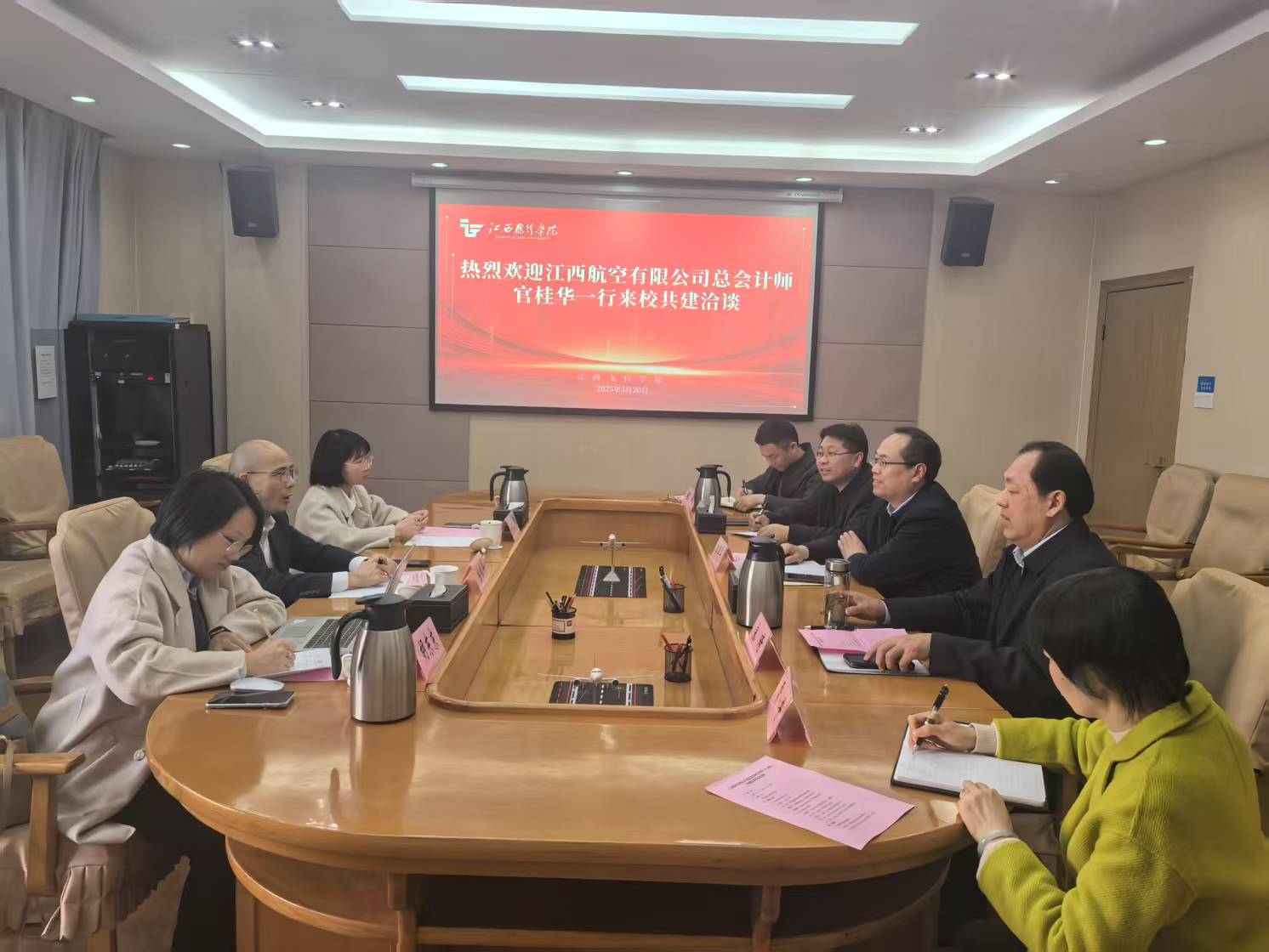 2025年3月20日下午,江西航空有限公司总会计师官桂华一行莅临beat365英国官网网站,就产业学院共建事项进行深入座谈交流。校党委委员、副校长郭军华出席会议,总飞行师宋琦、科研处、飞行技术学院负责人参加。