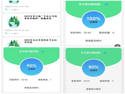 组织教职工通过绿宝碳汇参与“节水大作战,等你来挑战”节水知识答题活动。