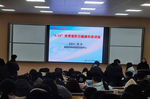3月5日,学校举办全国爱肝日健康教育及艾滋病防治知识讲座。此次讲座分为两个部分,分别为乙肝等春季传染病防治知识教育及艾滋病防控宣传。学校邀请了南昌市疾病防控控制中心防疫科主任、副主任医生路亮主讲,全校各班级学生代表参加培训。
