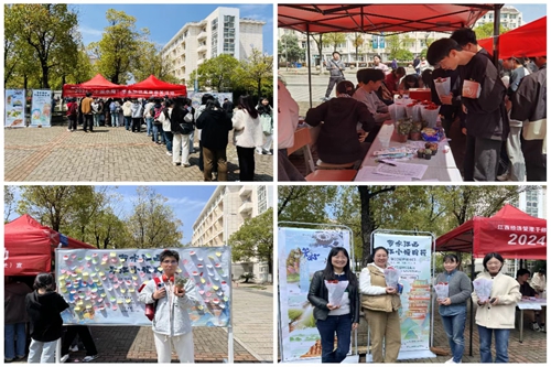 3月26日上午,校节能办在小树林广场举办了节水知识有奖竞答活动,参与活动的师生在宣传海报上贴上自己独创的节水标语,然后进行节水知识抽题作答,根据答题结果可获得相应奖品一份。富有创造性的活动形式深受师生喜爱,活动现场热情高涨,大家自发排起了长队,获得奖品的师生也纷纷合影留念。