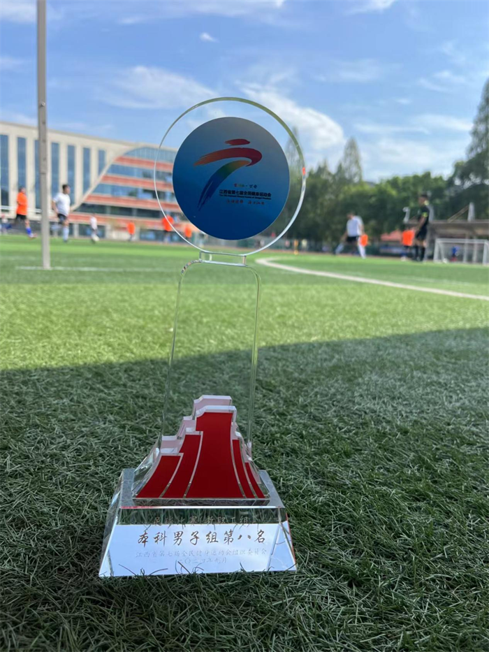 2024年9月2日至9月6日,由江西省教育厅主办的第一届“树人杯”江西省教职工七人制足球比赛在吉安市吉州区顺利举行。校工会组建的学校教职工足球代表队在全省教职工男子本科院校组比赛中,凭着精湛的球技、顽强拼搏的精神,经历小组赛和淘汰赛的激烈角逐,最终取得全省男子本科组第八名的好成绩,并获评“体育道德风尚奖”。