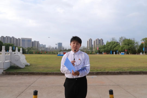 学生代表李世豪诵读了红色经典作品《青春中国》,号召同学们要赓续红色血脉、传承红色基因,在实现中华民族伟大复兴中国梦的新征程上奋发图强、逐梦前行,以实际行动诠释青春价值。