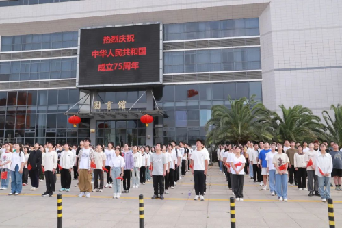 为共同迎接庆祝中华人民共和国成立75周年,激发广大学生的爱国热情,大力弘扬爱国主义精神,传承红色基因。10月1日清晨,学校青年学生在图书馆前广场开展国旗下的诵读活动。