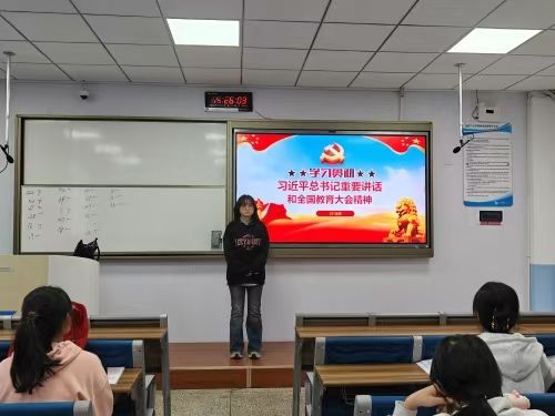 文法学院23级法律事务1班学生蔡羽:习近平总书记在全国教育大会上强调,“教育引导青少年学生坚定马克思主义信仰、中国特色社会主义信念、中华民族伟大复兴信心,立报国强国大志向、做挺膺担当奋斗者”。这为即将步入社会,走向工作岗位的我们指明了就业的大方向,要以建设祖国为己任,要做敢于担当的奋斗者。作为新时代青年,我将牢记习近平总书记的嘱托,砥砺前行,坚定理想信念,进一步提升自身的专业水平,积极投身社会实践,为实现中华民族伟大复兴的中国梦贡献青春力量。