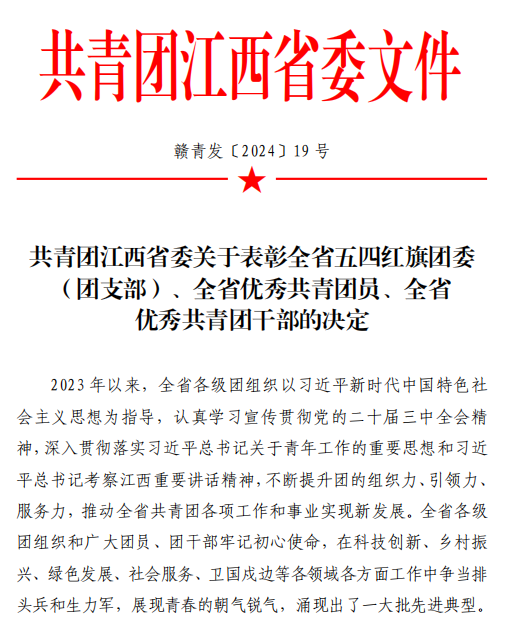 近日,团省委公布了《关于表彰全省五四红旗团委(团支部)、全省优秀共青团员、全省优秀共青团干部的决定》,学校电子与信息工程学院团总支荣获全省“五四红旗团总支”称号。