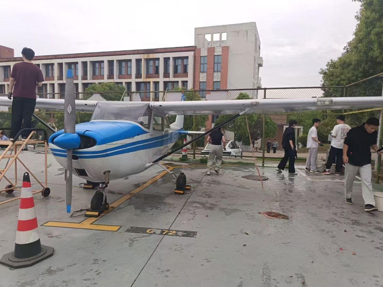 活动当天,40余名入党积极分子在支部委员的带领下,携带清洁工具前往停机坪,分组开展清扫工作。同学们分工协作,有的清理地面杂物,有的擦拭飞机机身,确保停机坪及教学飞机保持良好状态。尽管天气炎热,大家依然热情高昂,以实际行动践行“奉献、友爱、互助、进步”的志愿服务精神。