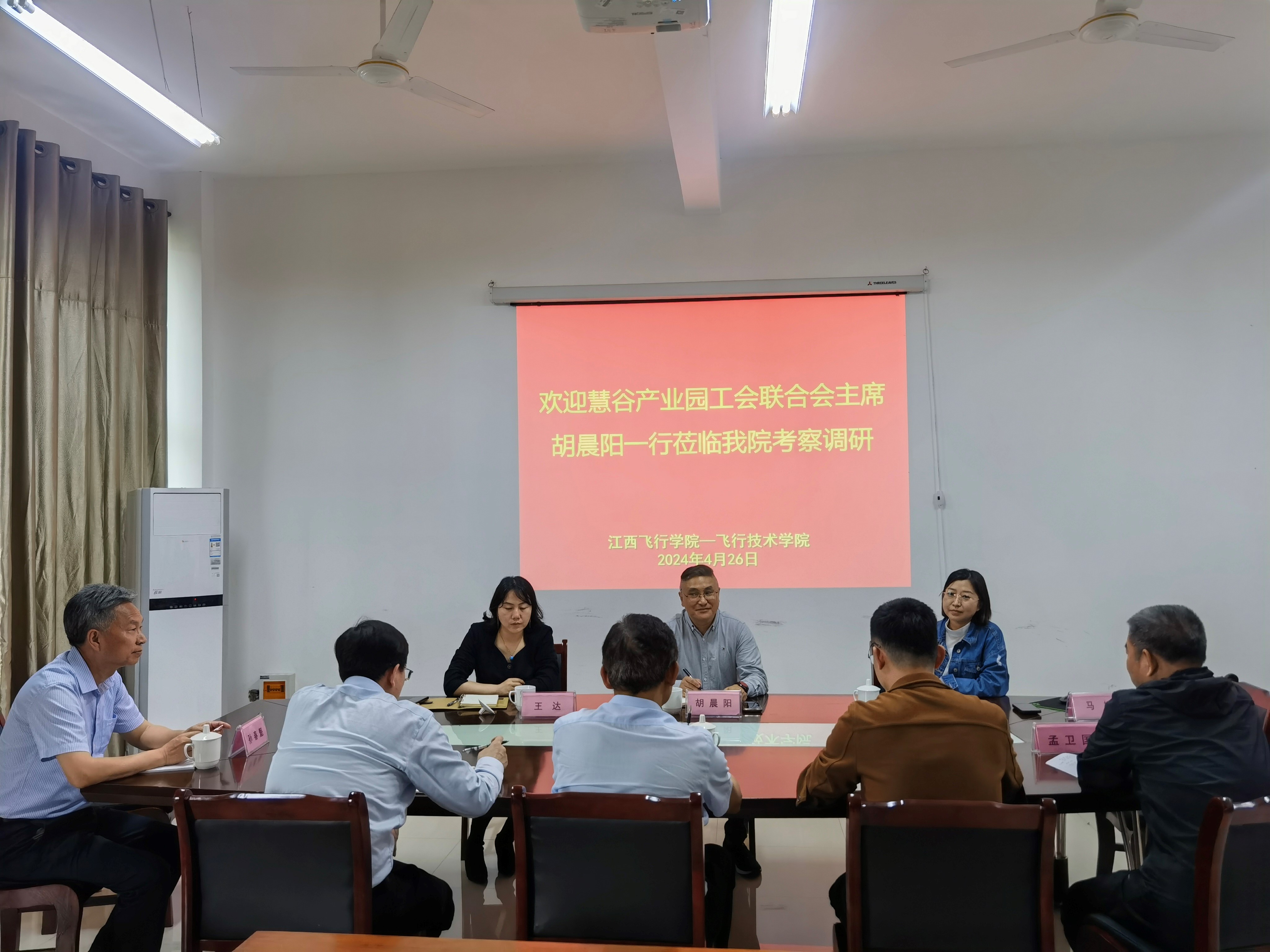 4月26日下午,江西慧谷产业园联合会主席胡晨阳一行来飞行技术学院考察交流,双方在4235会议室召开座谈会。党总支书记郭青山、副院长徐剑锋、副院长程斌及相关负责同志参加座谈。