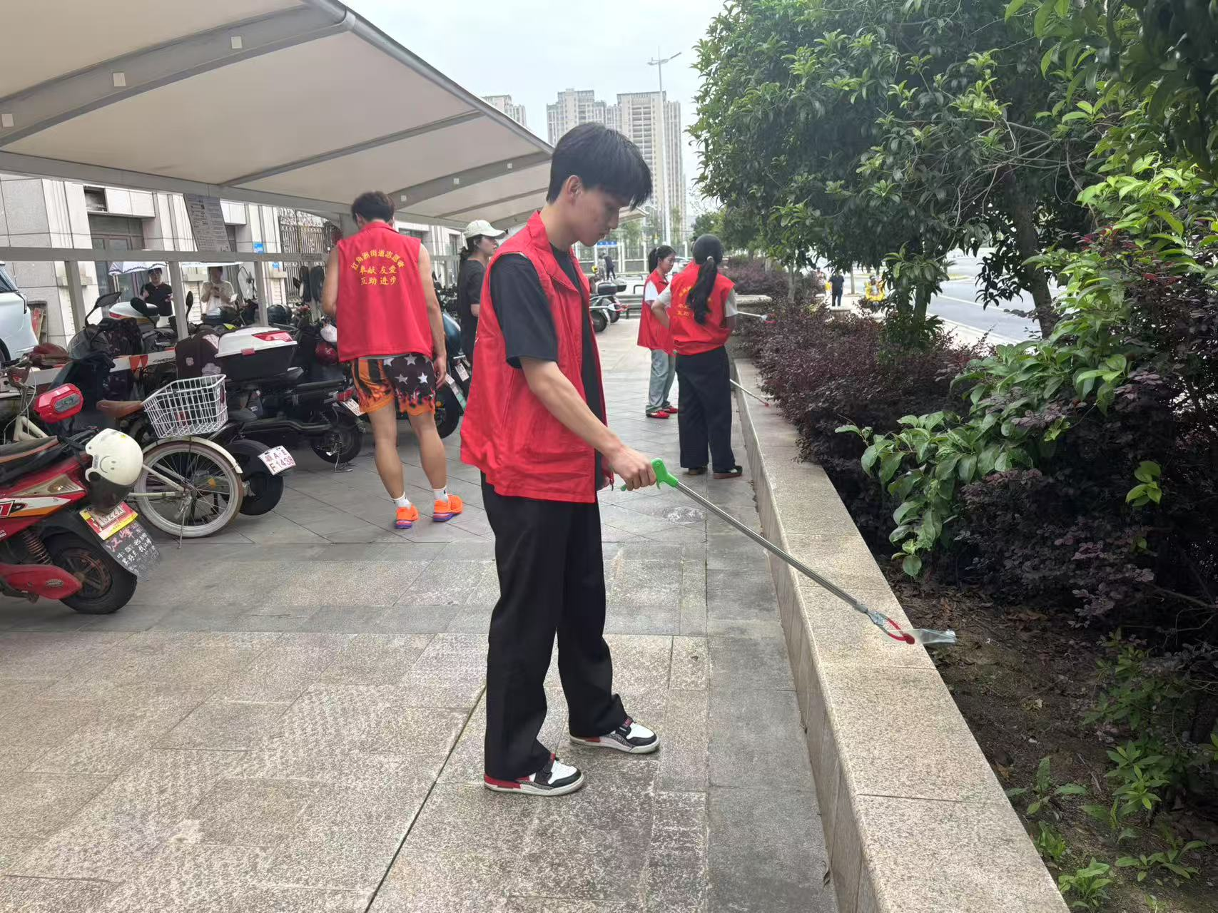 此次活动主要是为茶园街社区净化环境。活动开始,由班长就清扫区域进行工作分工,分发清扫工具。志愿者们迅速进入状态,清扫垃圾、捡拾树叶、按序排放电动车等,大家虽然忙碌不已,却也乐在其中,每位志愿者脸上都挂着汗水但洋溢着快乐的笑容。同学们相互配合、相互协作,经过一个多小时的辛勤劳动,社区周边环境变得整齐有序。