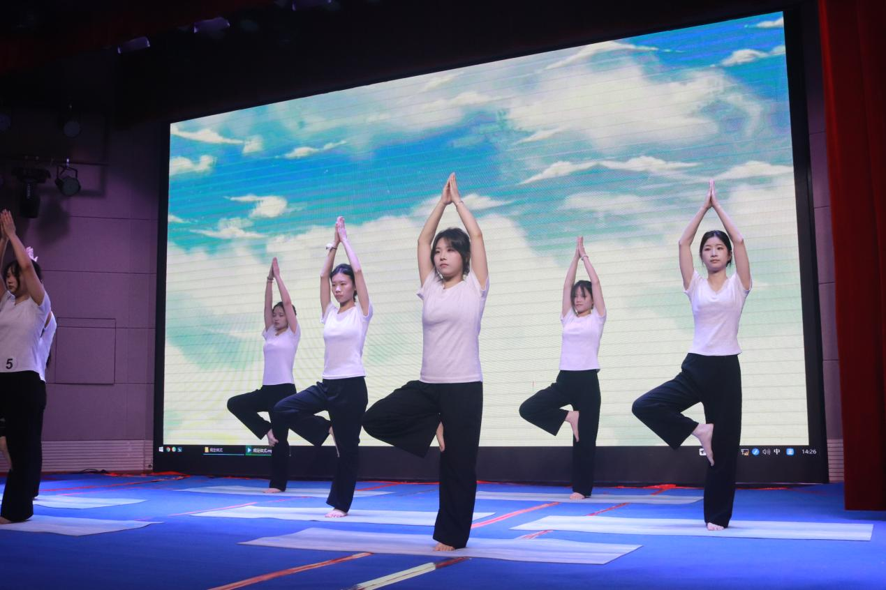 本次比赛设置健身瑜伽自编套路及规定套路两个项目,既考验选手的艺术创造力,又彰显瑜伽运动的规范性与技术深度。来自七个二级学院的参赛团队,“以身为笔、以息为墨”,在方寸之间勾勒出力与美的诗篇,宛如灵动的精灵,将身体的柔软与生命的力量完美融合,在这方舞台上绘就出灵动而美妙的画面。