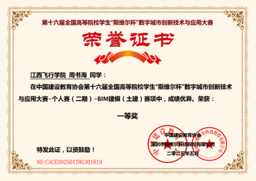 本次比赛有助于学生个人技能的提升和综合素质的培养,该比赛被列入江西省2025年普通高等学校专升本“大国工匠班”招生简章的比赛目录,学生通过获奖证书可以获得华东交通大学“大国工匠班”报考条件,同时该比赛可推动专业技能与职业标准的有效衔接,学生通过获奖证书可直接申请“1+X”建筑信息模型(BIM)职业技能等级初级证书,实现“以赛代考,赛证融通”,获得宝贵的实践经验和职业发展机会,为未来的职业生涯奠定坚实的基础。