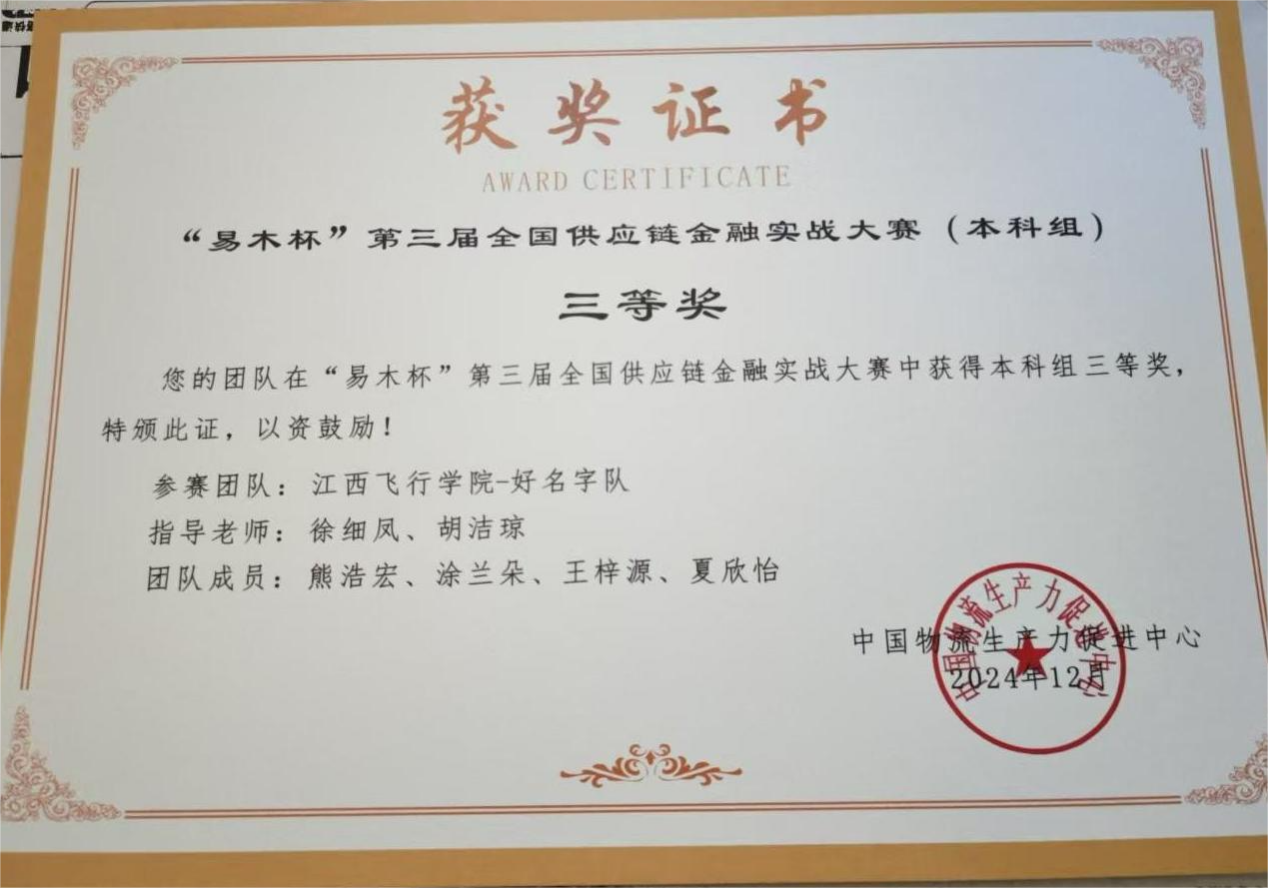 【喜报】机场学院学子在2024年“易木杯”第三届全国供应链金融实战大赛获三等奖