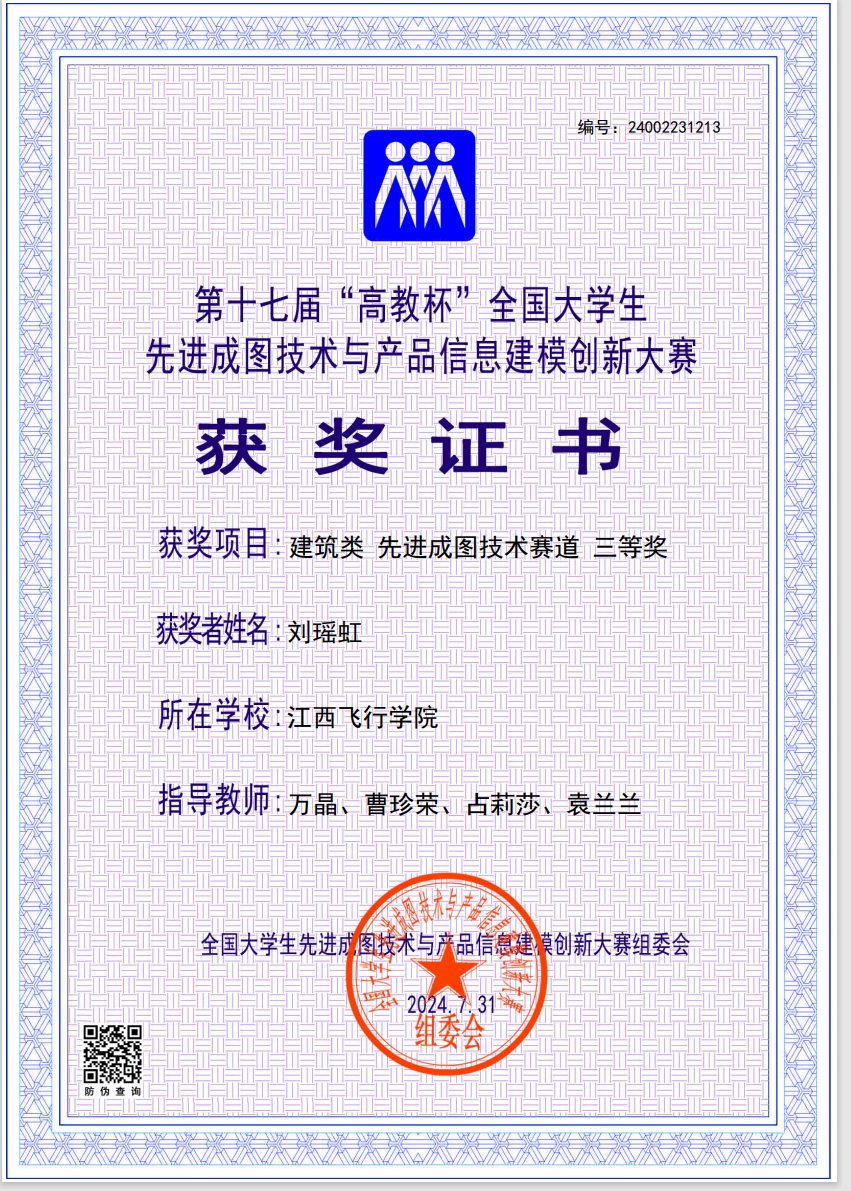 第十七届“高教杯”全国大学生先进成图技术与产品信息建模创新大赛全国总决赛在贵州大学举行,本次比赛设贵州大学主赛场和各省多个分赛场。机场学院学子参加了设立在南昌航空大学分赛场的建筑类个人赛项,最终获得个人二等奖1项,个人三等奖2项。