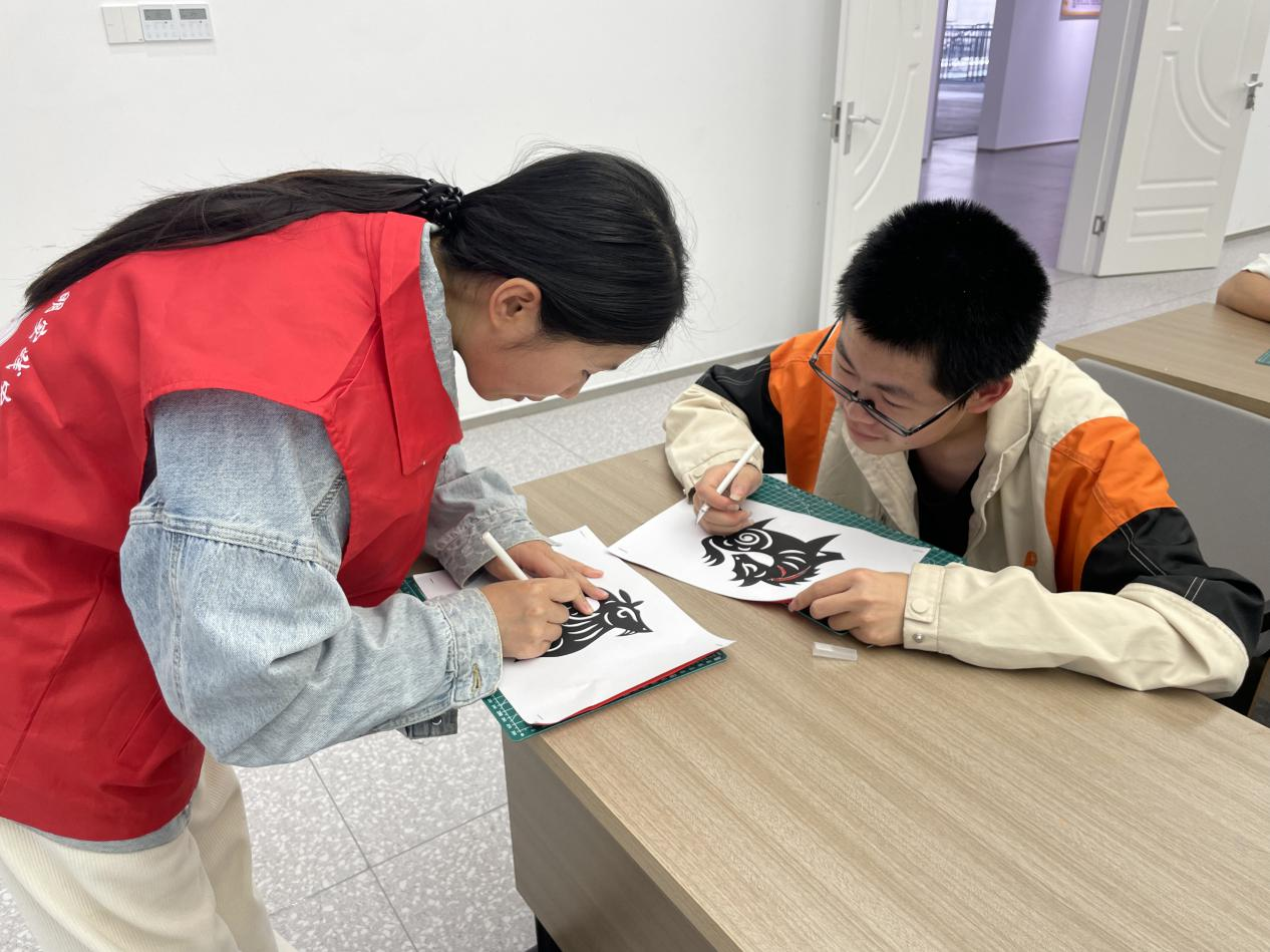 “下刀要稳,走线要准,传统纹样讲究阴阳相济。”教学现场,老师边示范边讲解。在制作创新性刻纸画时,面对如何将现代元素巧妙融入刻纸的困惑,老师则引导学生把握人物比例和特征,同时鼓励他们大胆想象,将心中的创意通过刻刀完美呈现。学生们全神贯注,一刀一刻间,传统与创新的刻纸作品逐渐成形。
