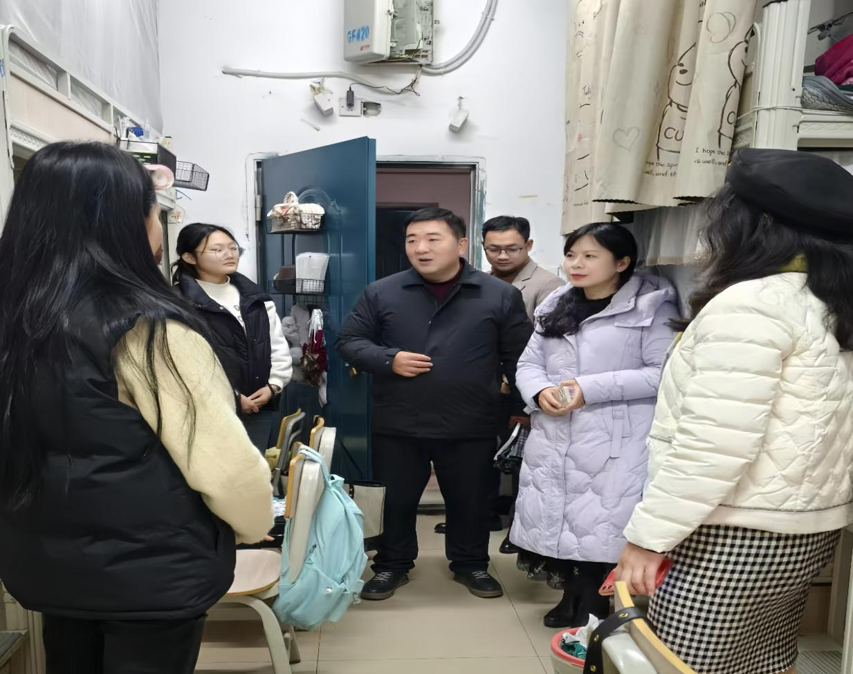 2025年2月19日,文法学院院长林芸、党总支副书记曹国平、深入学生宿舍,走访慰问学生并检查宿舍安全。