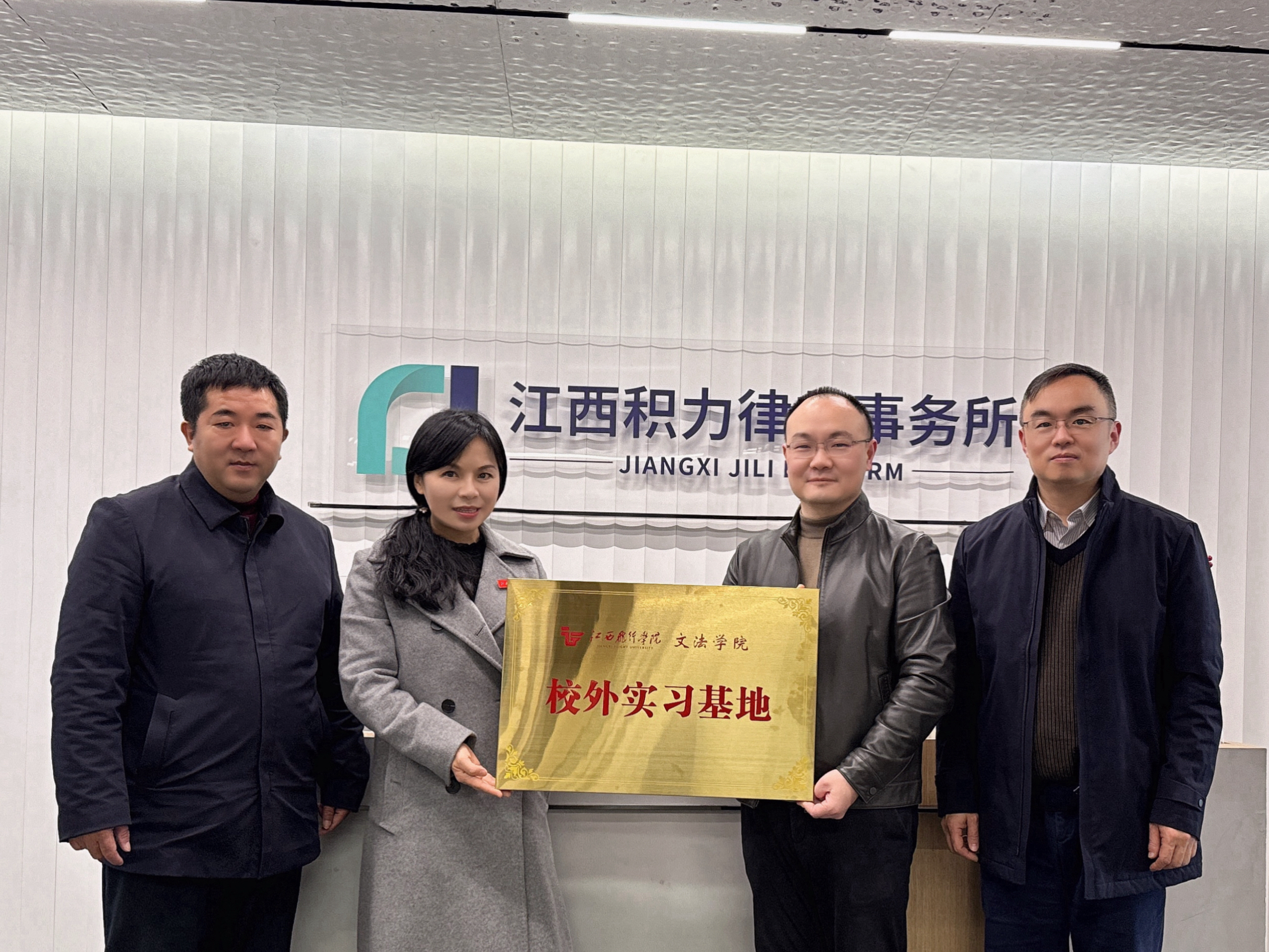 1月7日下午,文法学院与江西积力律师事务所校外实习基地授牌仪式顺利举行。仪式在律所会议室进行,文法学院院长林芸、党总支副书记曹国平,以及江西积力律师事务所主任周利锋、合伙人胡晖律师等出席。