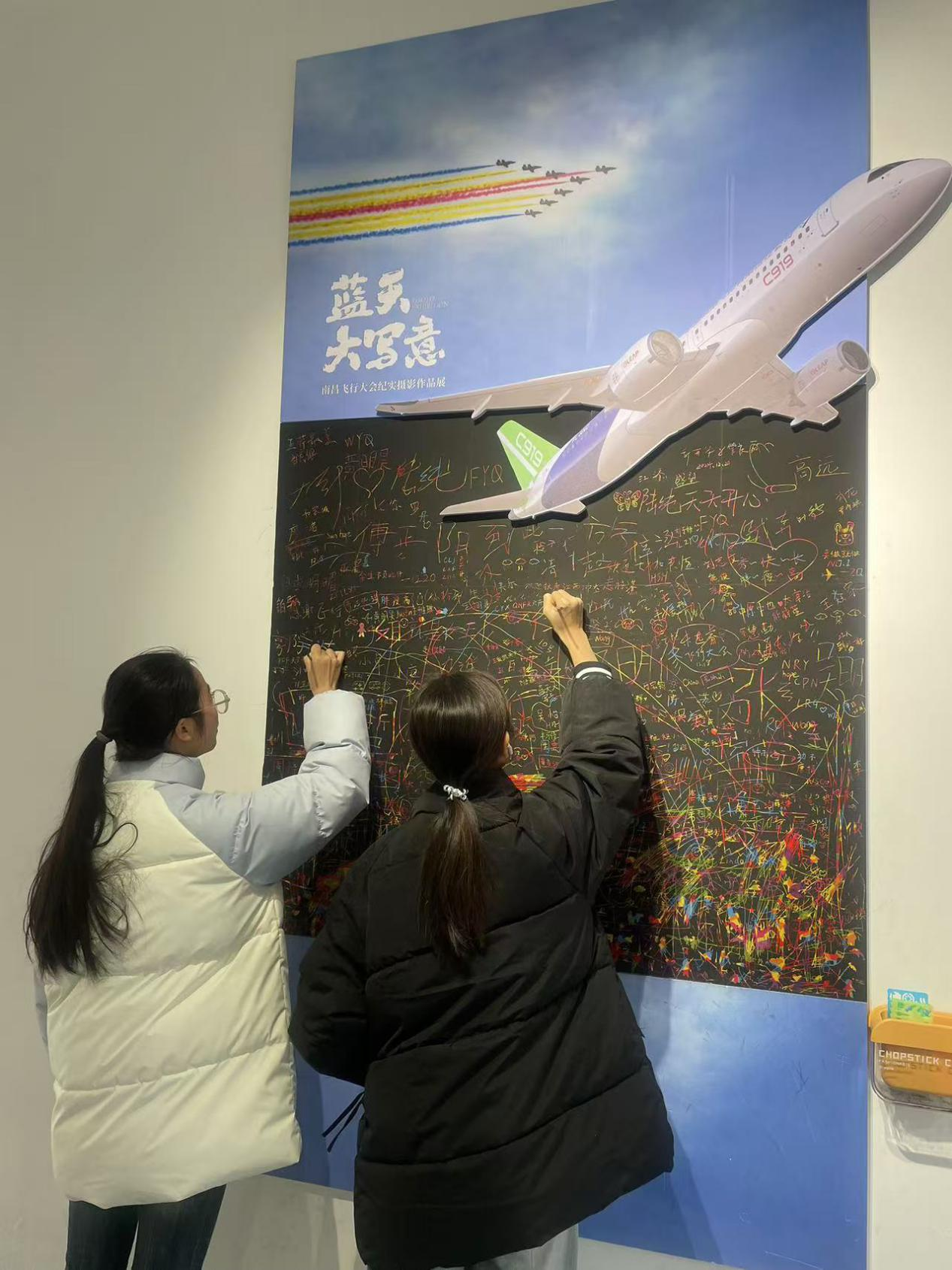 在C馆,师生参观了和航空有关的精美文创产品,切身体会到了“审美经济”时代的到来。最后师生在签名展板上留下自己的名字,希望通过这种方式,书写属于自己人生道路上浓墨重彩的一笔。