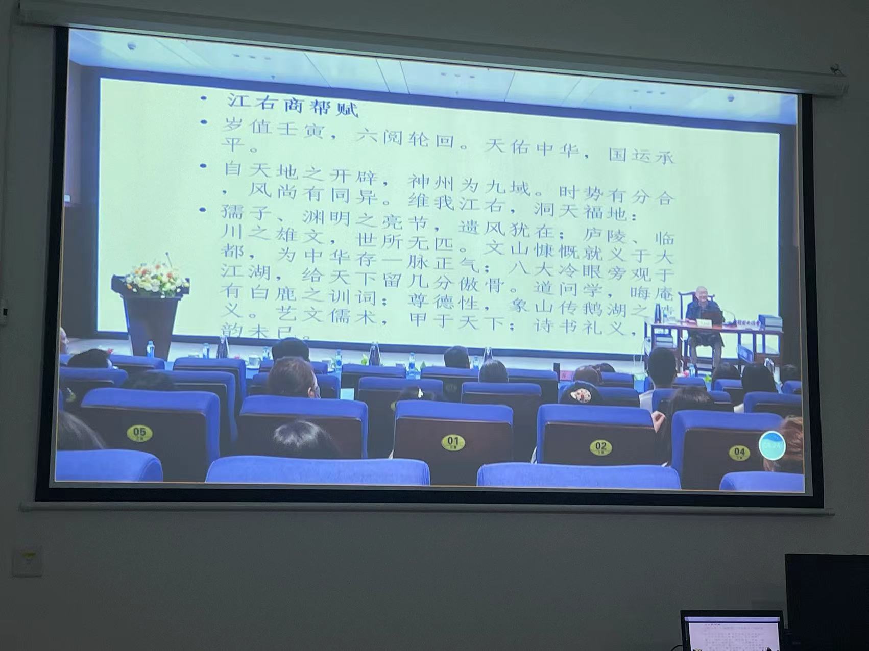 4月25日下午,文法学院师生40余人通过线上线下的方式参加江西师范大学方志远教授主讲的“江右商帮赋与江西文化研究”讲座。20余名师生在文法学院院长、省赣商文化研究基地主任林芸教授带领下前往江西省图书馆湖报告厅参加现场讲座,20余名师生在文法学院会议室观看讲座直播。讲座由省社联江西社科大讲堂、省图书馆赣图大讲堂以及大江网共同举办。