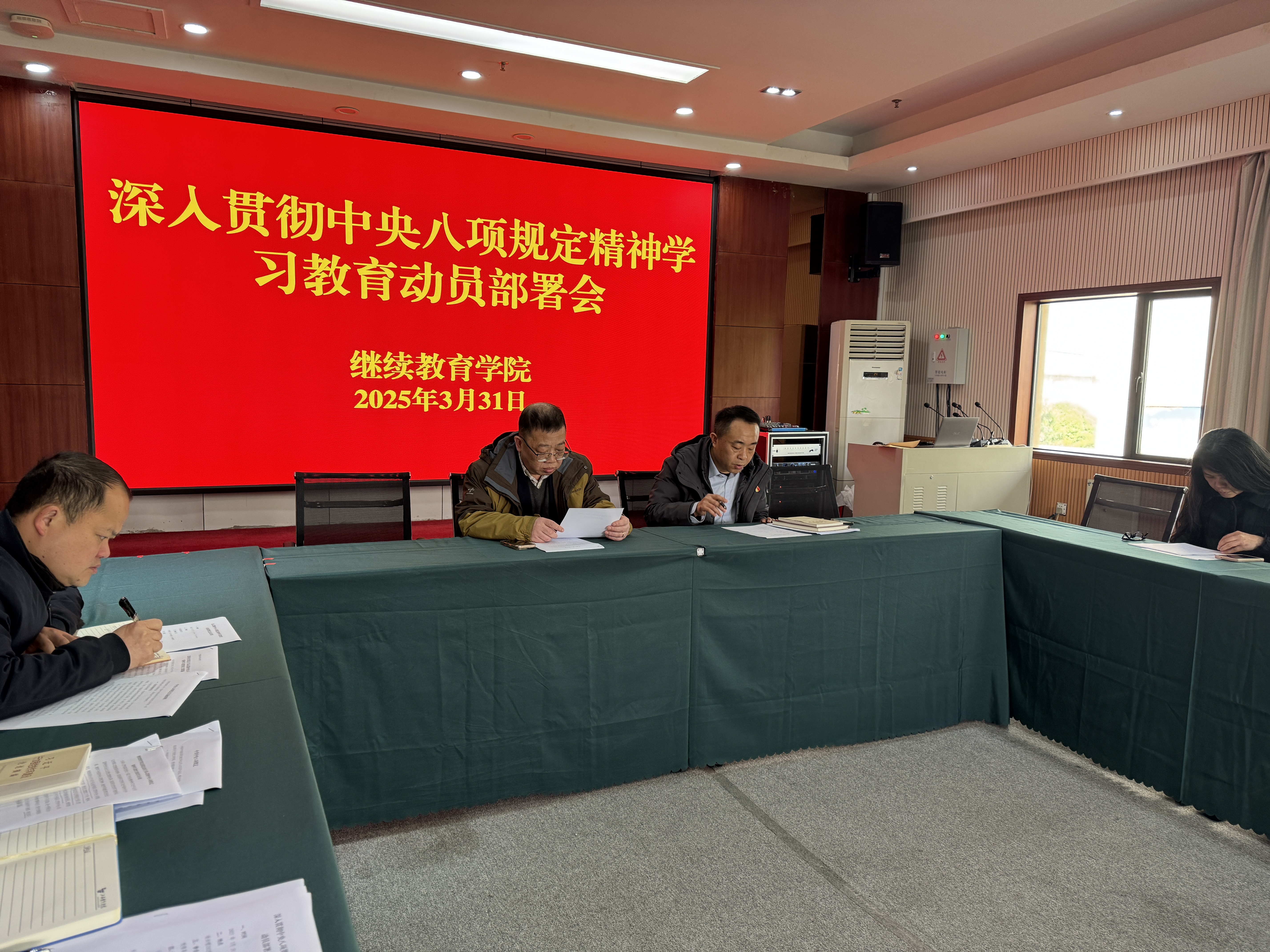 3月31日,继续教育学院在培训楼202会议室召开深入贯彻中央八项规定精神学习教育动员部署会。学校副校长欧阳剑雄出席会议,学院副院长、党支部书记石火财主持会议,全体工作人员参加。